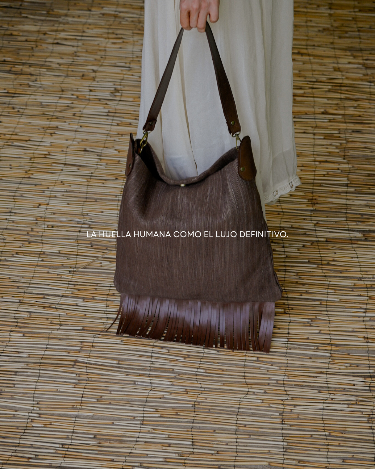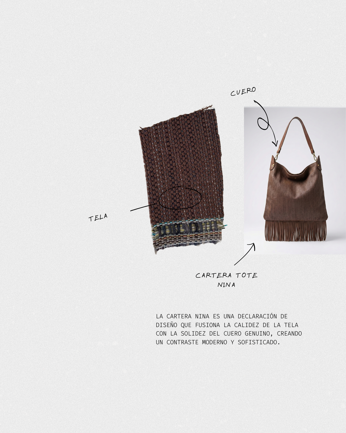 Cartera Tela y Cuero Genuino Elena Chocolate Grande
