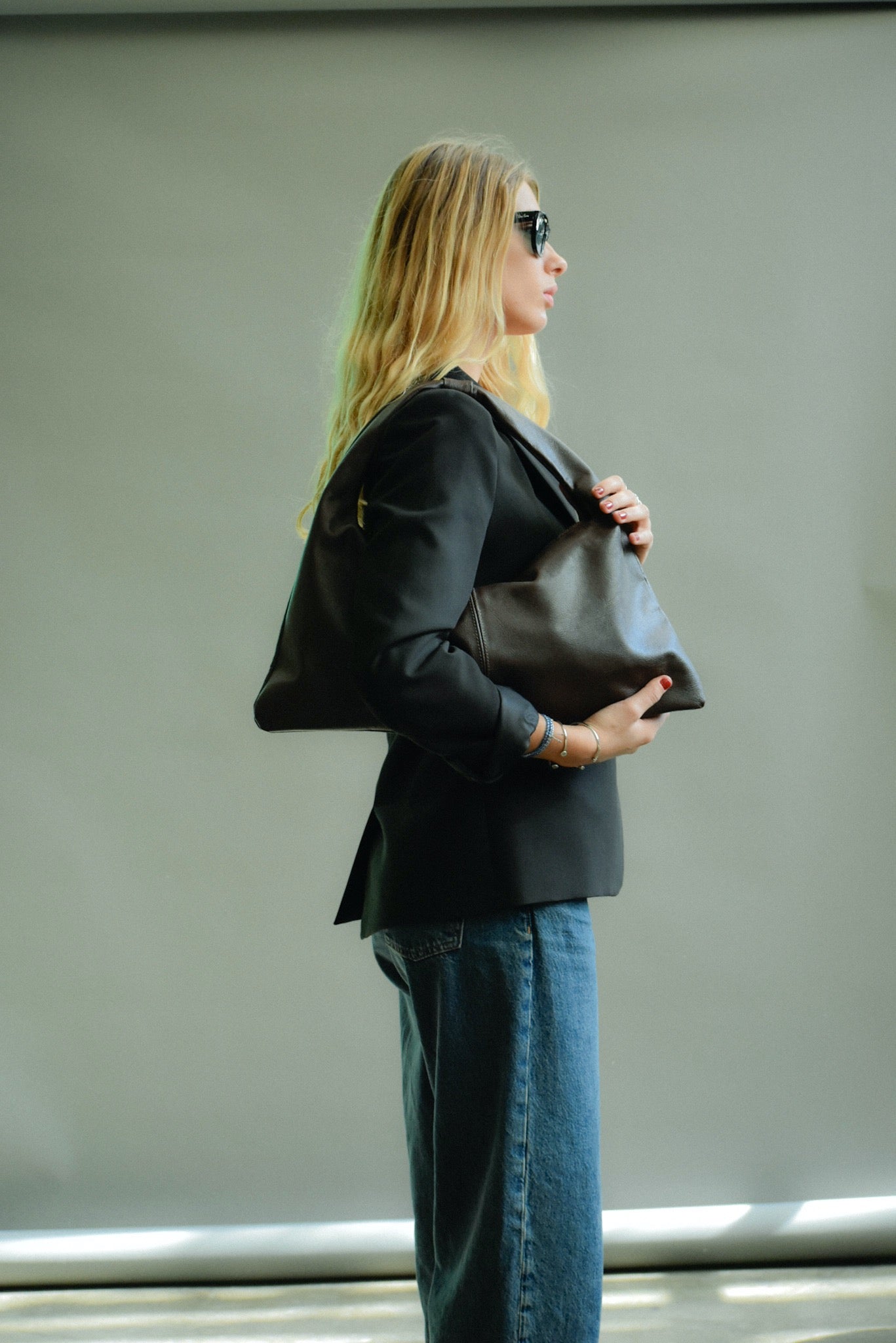 Esta elegante cartera de cuero negro, elaborada meticulosamente a mano, presenta una silueta geométrica flexible que combina con una artesanía clásica. Su diseño versátil la convierte en un accesorio chic que se puede apreciar desde cualquier perspectiva.